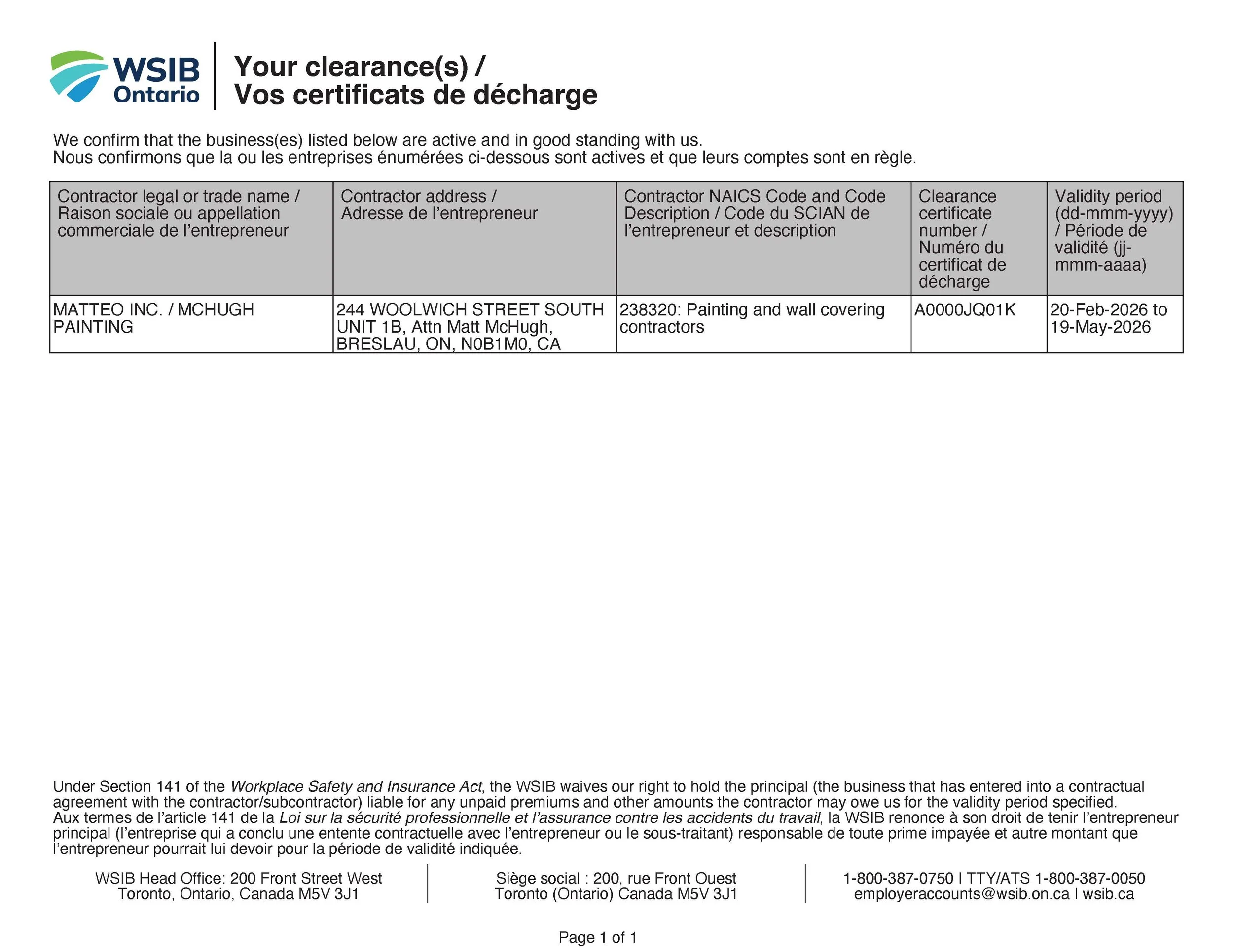 Fully Insured & WSIB Covered